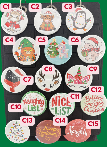 Each design comes in a pinback button or magnet options. Please ensure you select both the correct image number and backing options when adding to your cart.